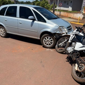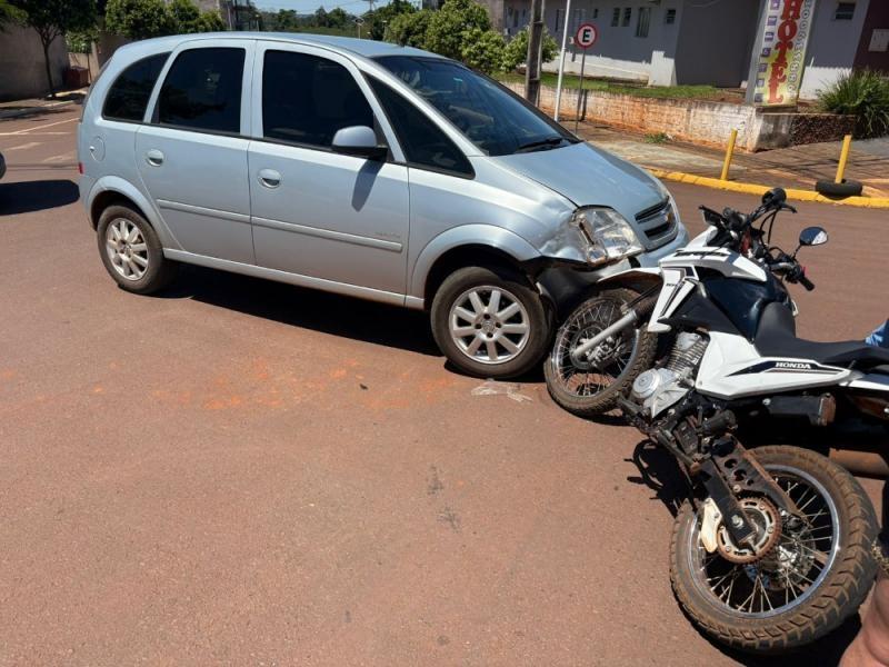 Conforme apurado no local, a colisão envolveu um GM/Meriva e uma motocicleta Honda Bross.