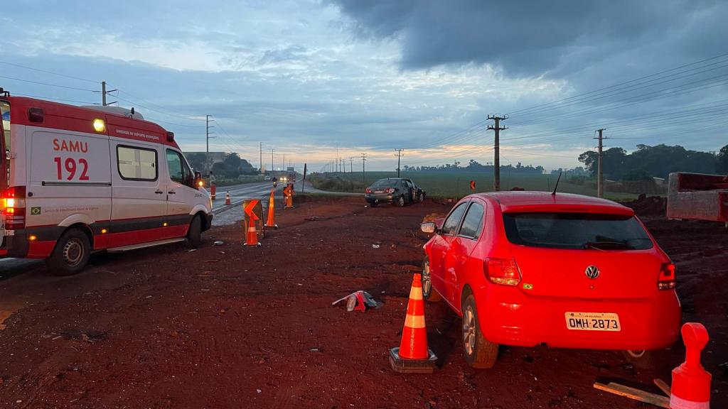 Um veículo Gol e um Corolla se envolveram em uma colisão no início da manhã desta quarta-feira (13) no trevo da C.Vale, que está em obras, na rodovia PR-182, no trecho que liga Palotina a Maripá.