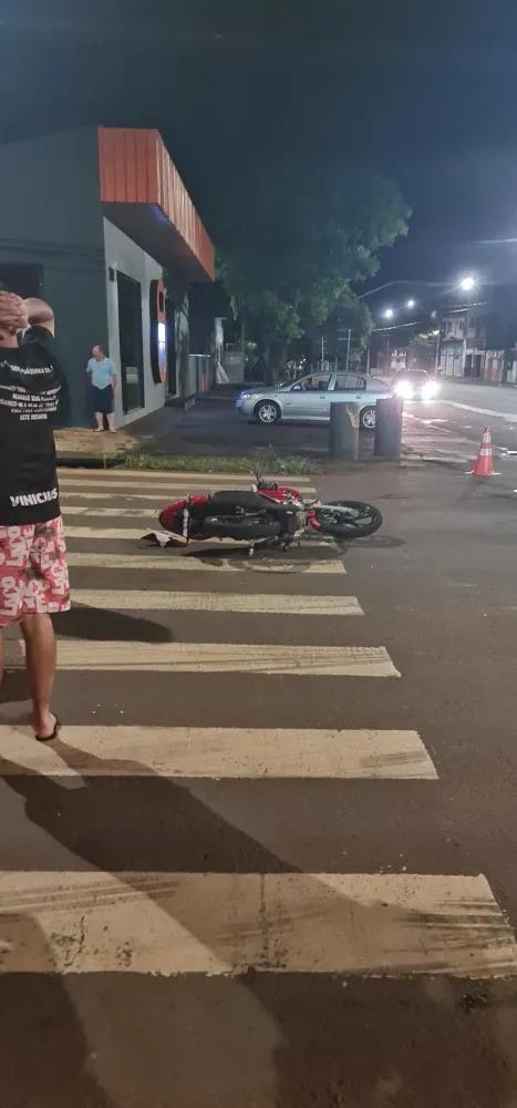 Na noite deste domingo, um acidente de trânsito foi registrado no cruzamento da Rua Pioneiro com a Avenida Independência, em Palotina. A colisão envolveu uma motocicleta e um automóvel Hyundai HB20.