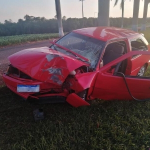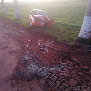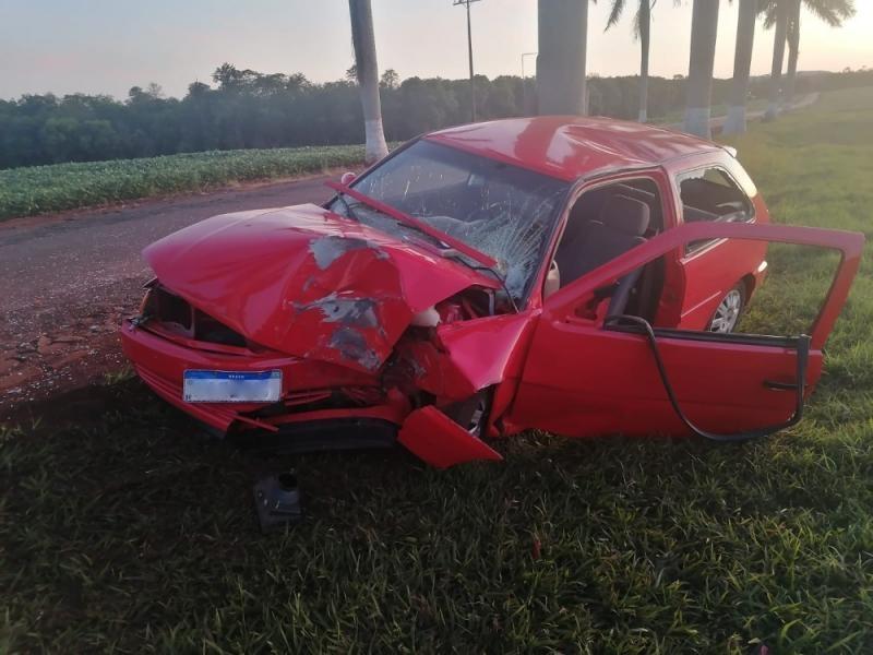 Conforme apurado no local, um VW/Gol de Marechal Rondon saia do distrito, quando o condutor perdeu o controle da direção e colidiu violentamente contra um coqueiro.