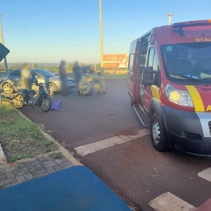 A motociclista sofreu queda e ferimentos, ela foi socorrida e levada para atendimento médico no Hospital Rondon por uma equipe do Corpo de Bombeiros.