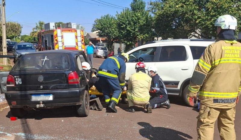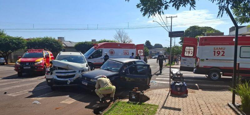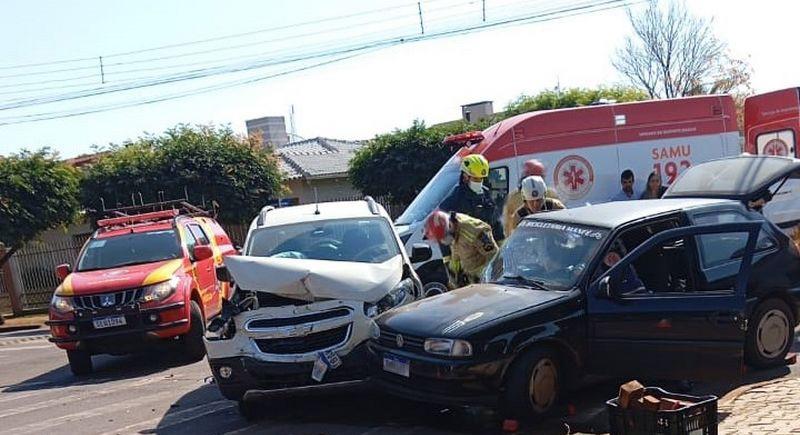Um acidente de trânsito foi registrado no início da tarde desta sexta-feira (11), no cruzamento das ruas 5 de Julho e General Rondon, nas proximidades da Padaria São Bento, em Palotina. A colisão envolveu dois veículos: um Chevrolet Spin e um Volkswagen Gol.