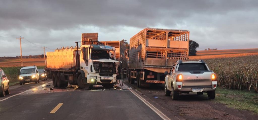 Segundo o que foi informado pela Polícia Rodoviária Estadual que atendeu ao acidente, a colisão aconteceu quando o caminhão Iveco de transportes de peixes trafegava no sentido a Maripá e o caminhão Volkswagen no sentido contrário, o motorista do caminhão Iveco teria dado uma cochilada ao volante quando houve a colisão atingindo as laterais dos dois veículos.