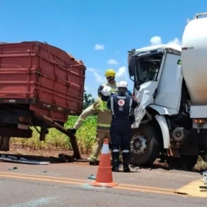 Um grave acidente de trânsito foi registrado nesta quinta-feira (9) na PR 364, saída de Palotina em direção a Assis Chateaubriand. A colisão traseira envolveu dois caminhões e resultou no motorista de um dos veículos preso às ferragens.