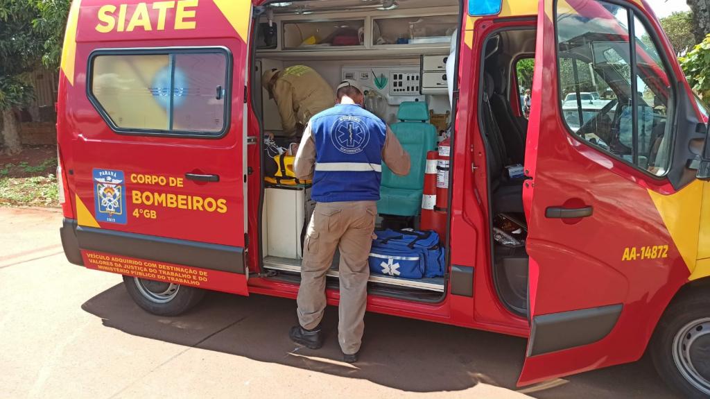 A colisão envolveu um veículo Hyundai HB20 com placas Mercosul e uma moto Biz de 100 cilindradas com placa de Toledo conduzida por um rapaz de 33 anos que tinha na garupa o jovem de 23 anos.