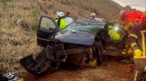 Na tarde deste domingo (13), um acidente entre dois veículos provocou congestionamento e mobilizou equipes de resgate no KM 629 da BR-277, em Céu Azul, próximo à praça de pedágio.
