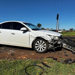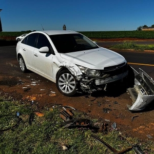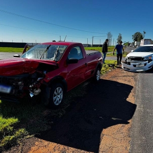 Um acidente resultou com dois carros com a frente danificada no trevo de Maripá na manhã desta quarta-feira, um veículo Saveiro e um Cruze com placas de Curitiba se envolveram na colisão, onde obras estão sendo realizadas na rodovia PR 182.
