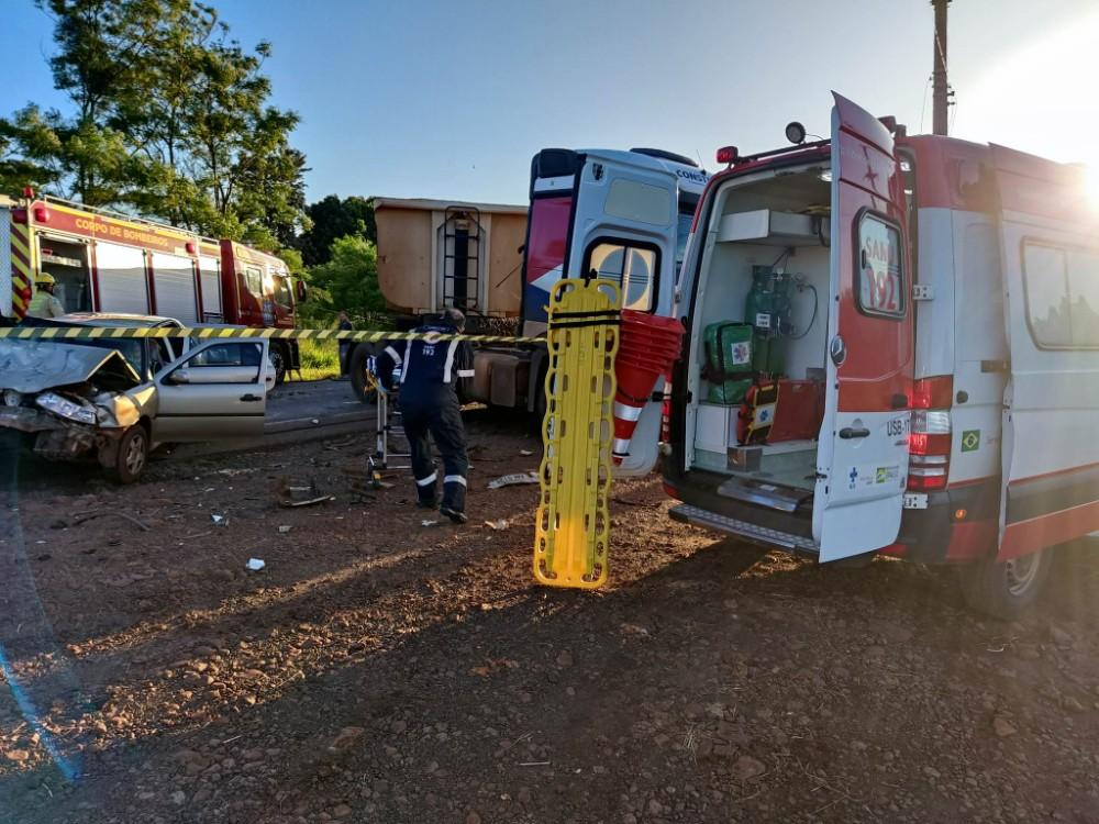 Um grave acidente de trânsito foi registrado no início desta manhã de sábado (18), na BR-163 entre Marechal Cândido Rondon e Quatro Pontes, envolvendo um veículo Gol, um Fiorino e uma carreta.
