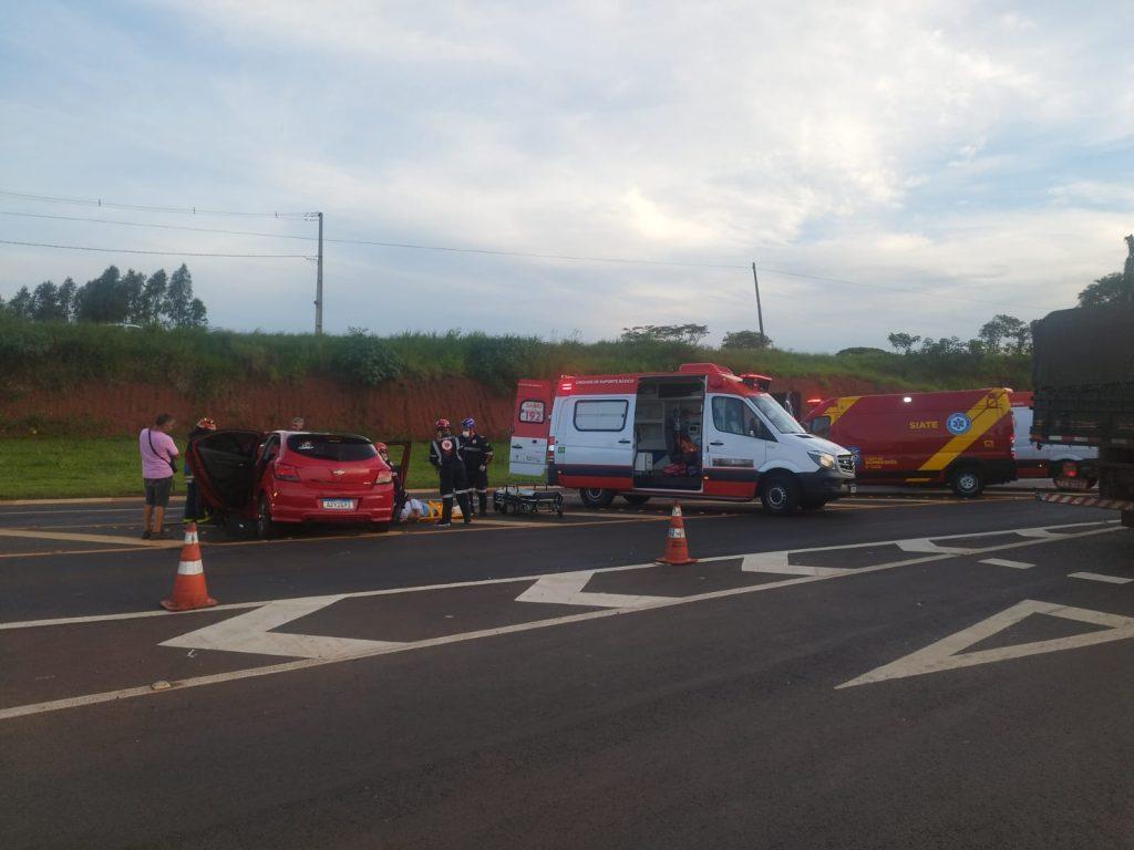 Um acidente entre dois veículos deixou três pessoas feridas, uma delas de forma grave, neste início de noite de quinta-feira (14), na PR-323, em Umuarama. A batida envolveu um Land Rover e um Chevrolet Onix.