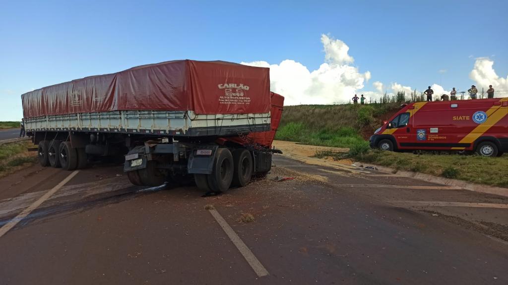 A colisão envolveu uma carreta Scania com placas do Paraguai conduzida por Roque Daniel Santa Cruz de 19 anos que tinha como passageiro Nestor Fabiano Gonzalez de 22 anos, os dois rapazes são de origem paraguaia, e uma carreta Volvo bitrem carregada de milho com placas Mercosul.