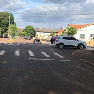 Uma colisão entre uma moto Honda e um veículo Chevrolet Tracker resultou com o motociclista ferido na avenida Tucunduva, esquina com a rua Três de Maio, na região central de Nova Santa Rosa.