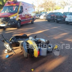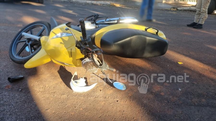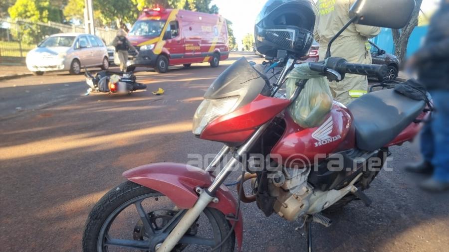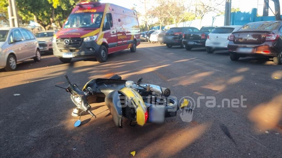 Um motociclista ficou ferido em um acidente de trânsito na manhã desta quarta-feira (13), no centro de Marechal Cândido Rondon.