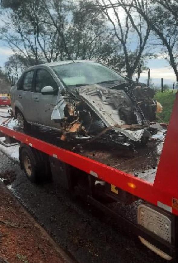 Após a colisão, o carro parou sobre a pista de rolamento, prejudicando o trânsito no local, que precisou ser desviado para a contramão.