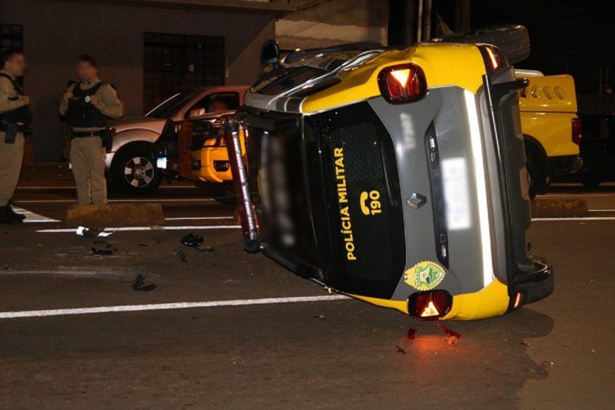 Apesar dos alertas sonoros e visuais, a motorista do Jeep não percebeu a aproximação da viatura. O impacto ocorreu na parte traseira do veículo policial, fazendo com que o motorista perdesse o controle e o automóvel tombasse lateralmente logo após a colisão.