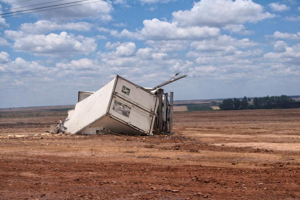 Com a força do impacto, o caminhão branco saiu da pista, adentrou uma área de plantação e acabou colidindo contra um poste (VEJA NO VÍDEO ACIMA). O outro caminhão envolvido no acidente também saiu da rodovia e parou em meio à lavoura.