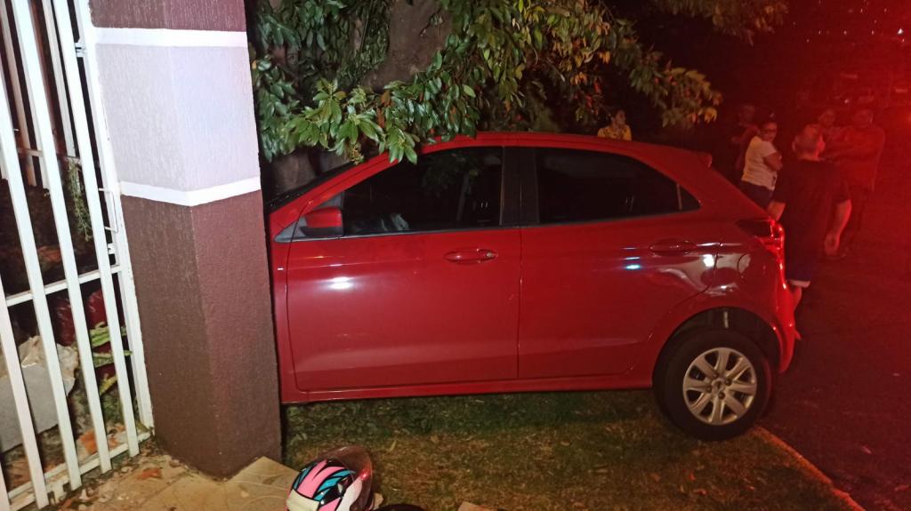 Após a colisão o veículo Ford Ka subiu na calçada e atingiu o muro de uma residência e o condutor da caminhonete perdeu o controle e atingiu um Chevrolet Corsa que atingiu um Gol que foi jogado contra um Fiat Siena, todos os três estavam estacionados.