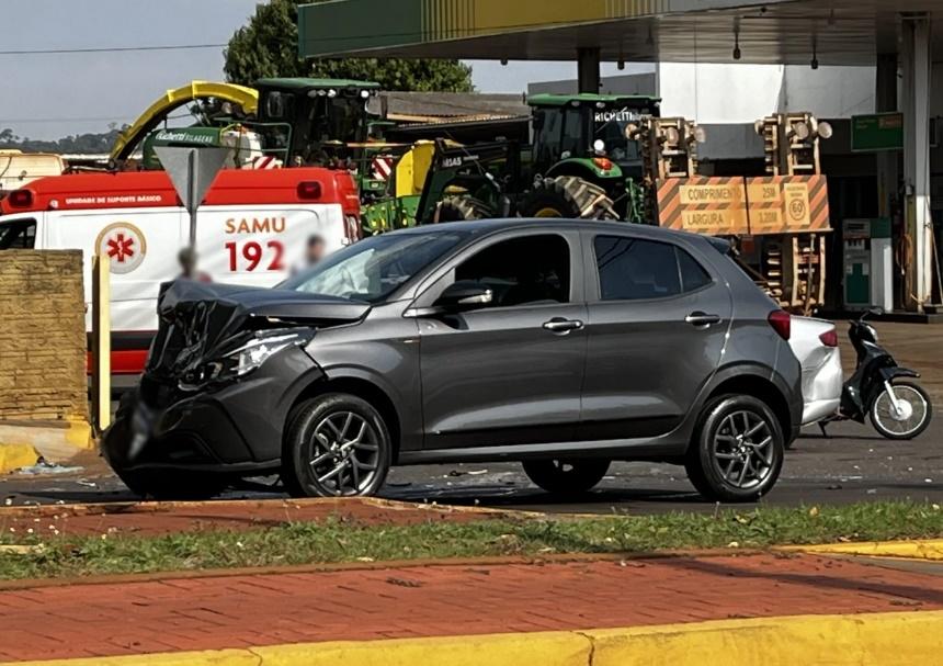 No início da tarde desta segunda-feira (24), um acidente de considerável proporção ocorreu na avenida Presidente Epitácio cruzamento com a rua Bagé, em Quatro Pontes, nas proximidades de um autoposto de combustíveis.