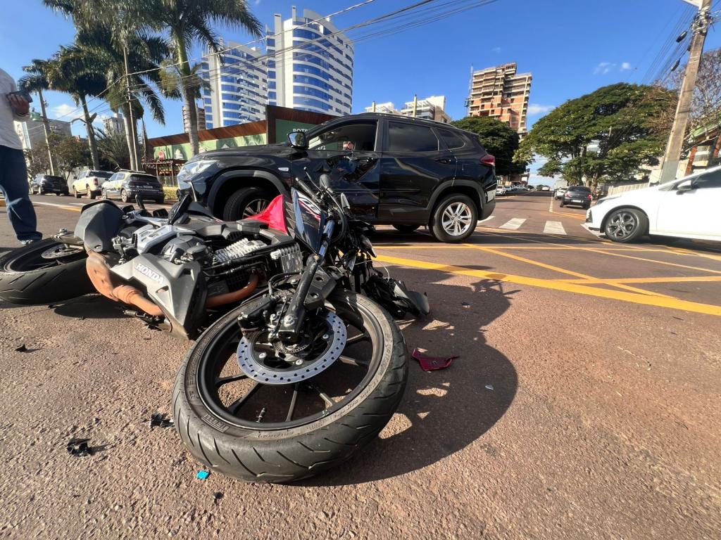 Um sinistro de trânsito registrado na tarde desta terça-feira (22), nas proximidades do Lago Municipal de Toledo, envolveu dois automóveis e uma motocicleta, sendo eles um Chevrolet Tracker, uma motocicleta Honda CB Twister, e um Fiat Strada.