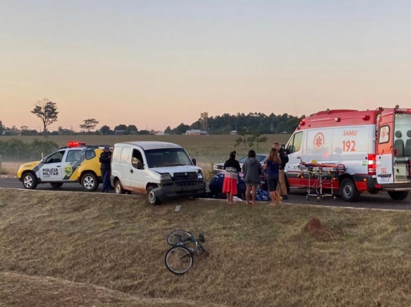 Segundo as informações, a colisão aconteceu no início da manhã e envolveu um Fiat/Doblô, dois VW/Gol e uma bicicleta.