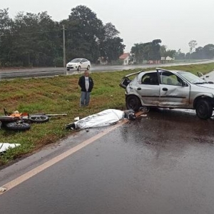 Segundo informações obtidas com o condutor do Celta, ele disse que seguia no sentido a Toledo e quando realizava uma ultrapassagem de uma carreta tanque a mesma o fechou obrigando ele desviar para a esquerda momento que o seu veículo rodou na pista atravessando o canteiro central e atingindo a lateral de uma carreta que seguia no sentido contrário e logo atrás da carreta seguia a motociclista que foi colhida em cheio pelo Celta.