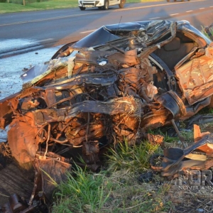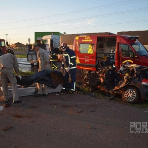 Um acidente fatal foi registrado por volta das 05h50 desta manhã na BR 163, trecho que liga Toledo à Marechal Cândido Rondon, em frente à indústria Primato e envolveu o Fiat Palio, placas BES 1731 de Toledo, conduzido pelo jovem Thiago Alves e a carreta Volvo Bitrem, placas APO 024 de Pato Branco, conduzida por Jorge Antônio de Goes.