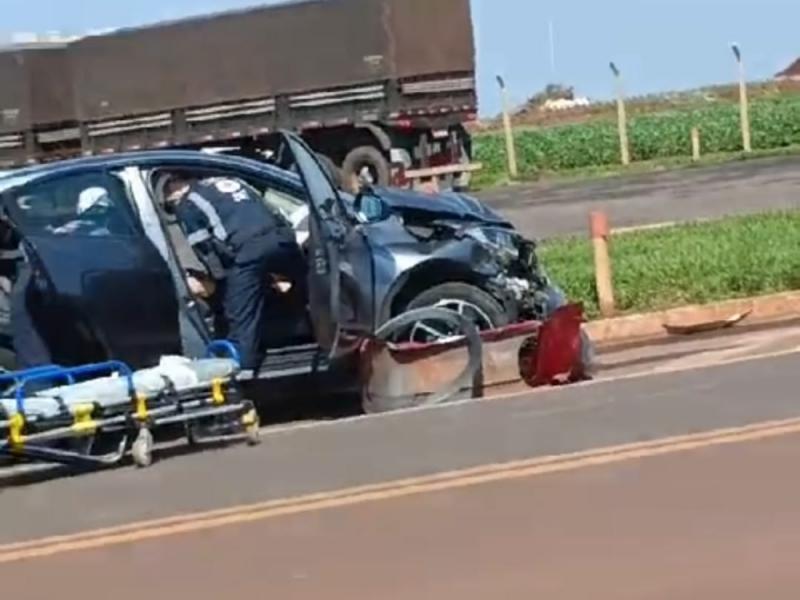 O acidente aconteceu no trevo de acesso ao Posto Sabiazinho, no distrito de Bela Vista, e envolveu um Ford Fiesta e um Honda HRV.