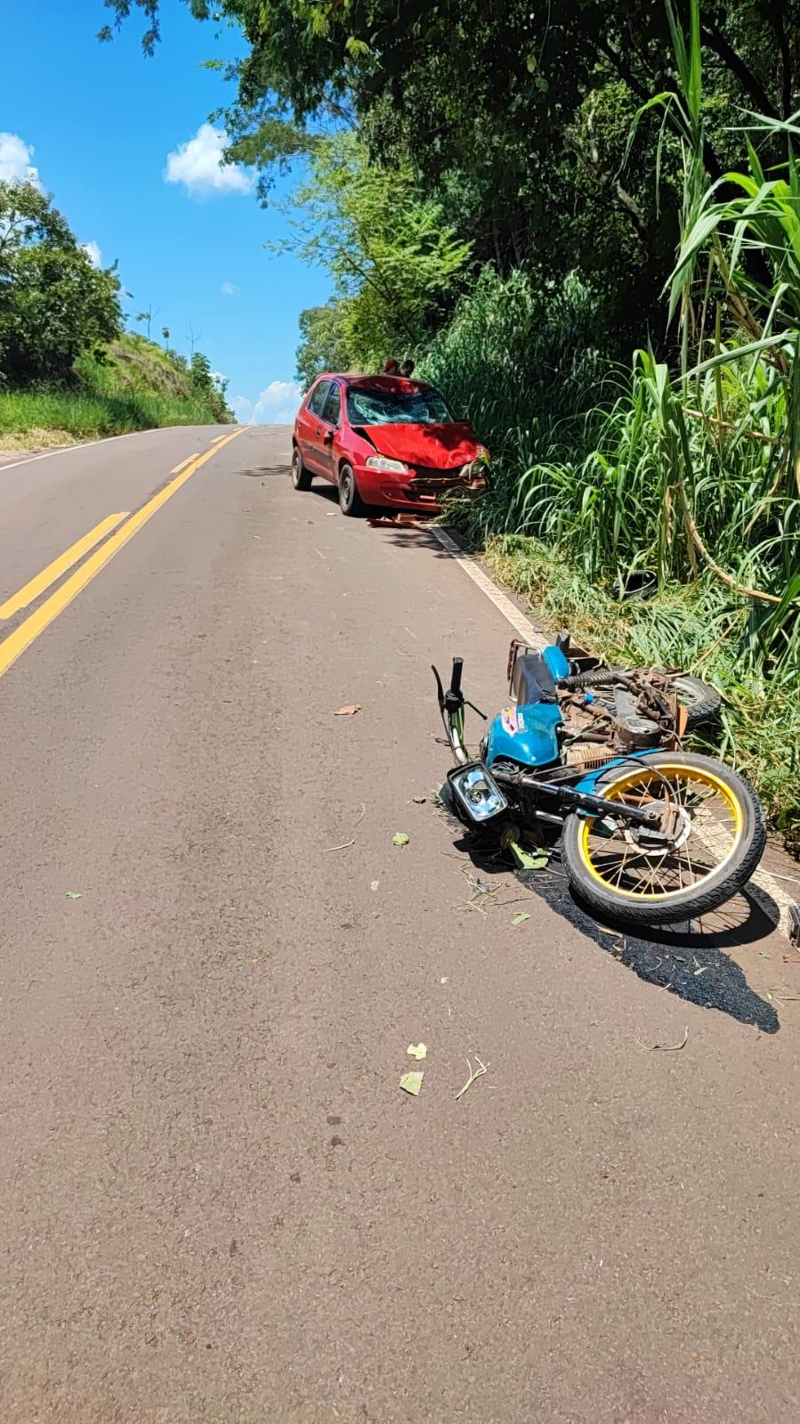 Um grave acidente foi registrado neste domingo (02) na PR-364, em Altamira do Paraná. A colisão envolveu uma motocicleta Honda CG 125 Titan e um automóvel GM Celta.