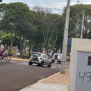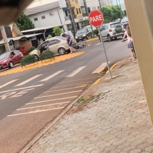 Um acidente envolvendo uma moto e uma carro aconteceu na rotatória da Avenida Santo Cristo com a Avenida Tucunduva, esquina do Restaurante Dalla na tarde desta sexta-feira.
