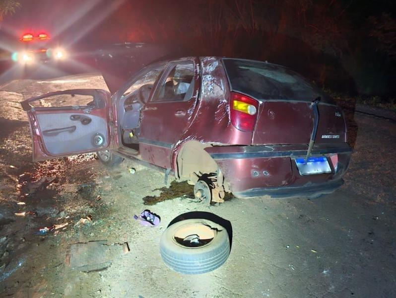 Conforme as informações, o acidente aconteceu por volta das 1h45, na saída de Três Irmãs para Porto Mendes. Um veículo Fiat/Palio com dois ocupantes seguia pela via, quando o condutor perdeu o controle, colidiu violentamente contra um bueiro e capotou.