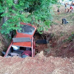 O veículo envolvido, um Corsa Wind, saiu da pista e caiu em uma vala que é o leito de um córrego ao lado da via.