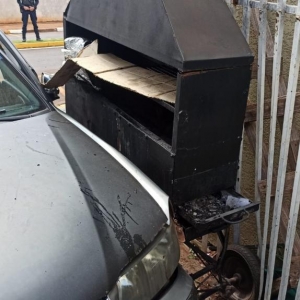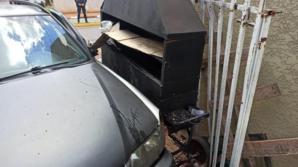 De acordo com informações, o acidente ocorreu quando o Ford Ka trafegava pela via e a Parati, conduzida por um homem de 65 anos, saía do acostamento e foi atingida pelo Fiesta. Após a colisão, a Parati avançou sobre a calçada, bateu no portão de uma residência e danificou uma churrasqueira de latão, parando parcialmente dentro do terreno.