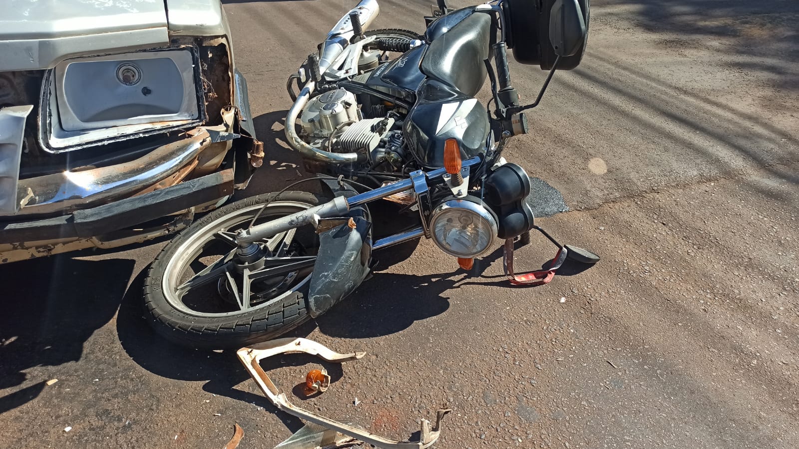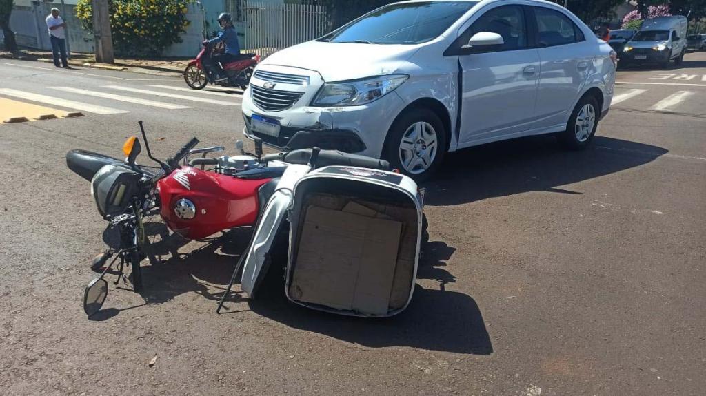 Na segunda ocorrência registrada, um Chevrolet Prisma e uma moto CG Start - 150 cilindradas - colidiram no cruzamento da Rua Maringá com a Rua General Etchegoyen, por volta das 10h00.