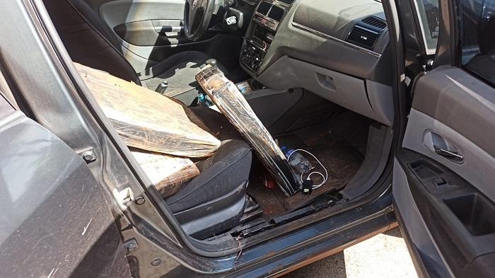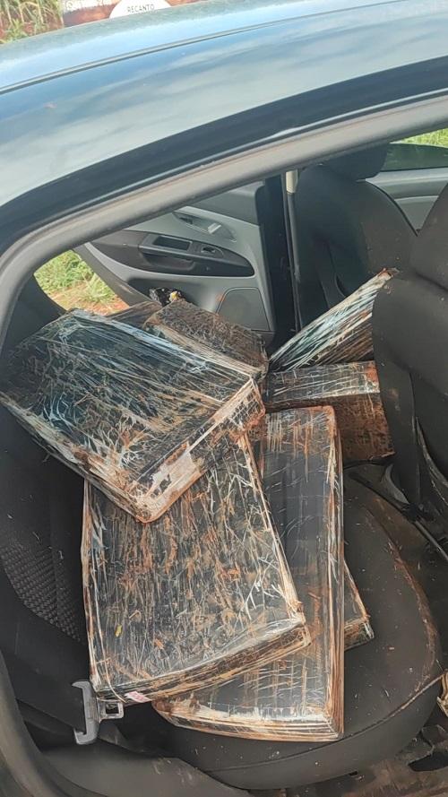 Diante das informações, a equipe ALI de Toledo deslocou-se em apoio. O veículo foi visualizado e, após perseguição, foi realizada a abordagem. Durante a revista no interior do carro, foram encontrados diversos fardos de maconha no banco traseiro, totalizando 131 kg após pesagem.