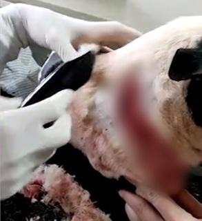 Já no local, a equipe entrou em contato com a senhora, a qual relatou que estaria em um estabelecimento em frente a referida residência e presenciou uma situação de maus tratos a animais, sendo que seria um menor de idade que havia ferido um cachorro com um golpe de faca.