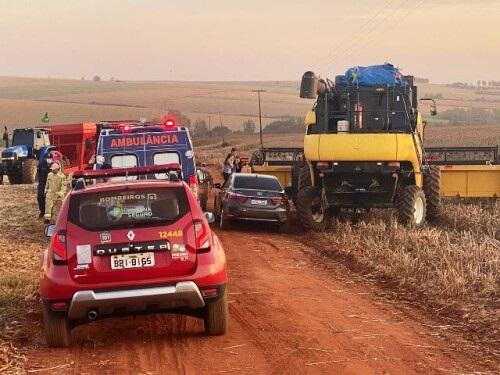 O acidente aconteceu quando a colheitadeira estava manobrando para entrar na lavoura e atingiu o agricultor.
