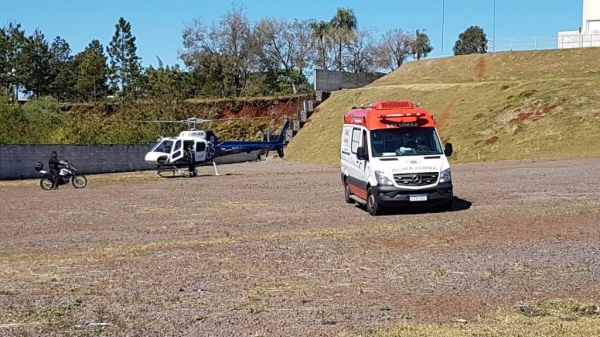Os socorristas do Samu prestaram os primeiros atendimentos à vítima, sendo que foi necessário o acionamento do aeromédico.