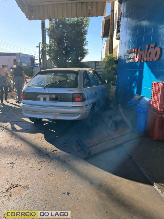 MOTORISTA EMBRIAGADO E SEM CNH COLIDE CONTRA SUPERMERCADO