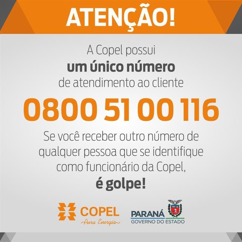 A Copel informa que o único número de atendimento é o 0800 5100 116.