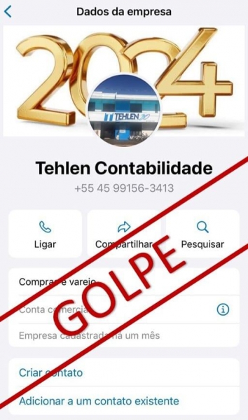 Um número desconhecido está se passando por membro da equipe do Escritório Tehlen de Nova Santa Rosa.
