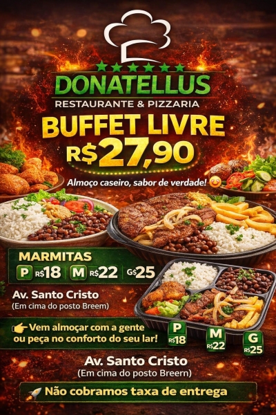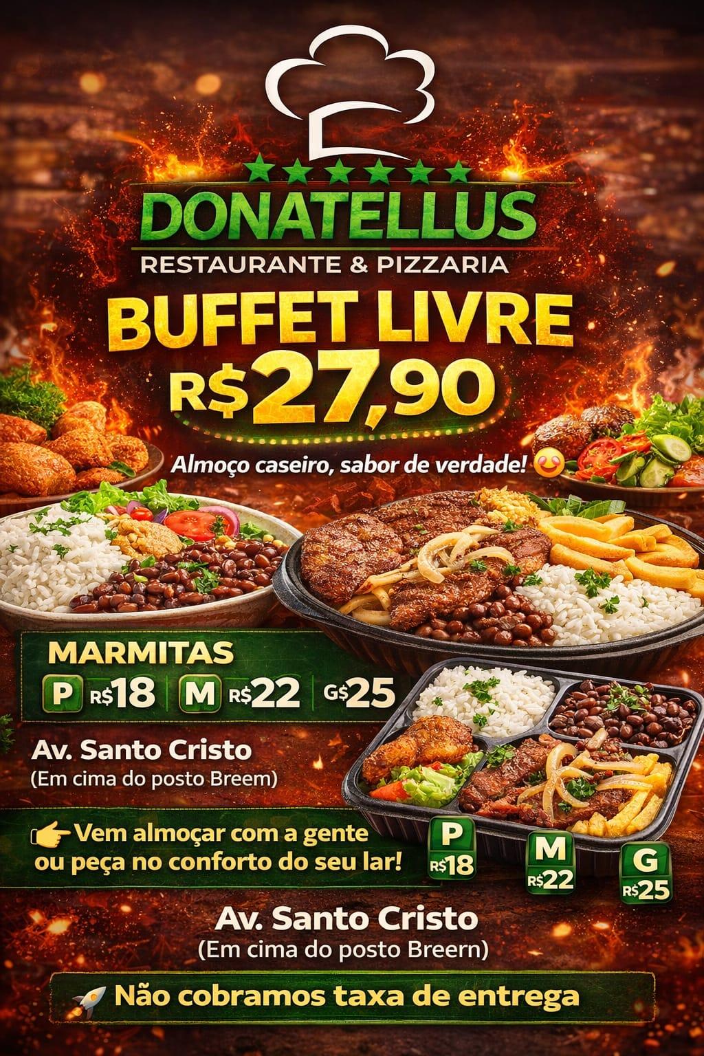 Localizado na Avenida Santo Cristo, em cima do Posto Breem, o Donatellus se consolida como uma escolha certa para quem quer comer bem, gastar pouco e ainda contar com comodidade.