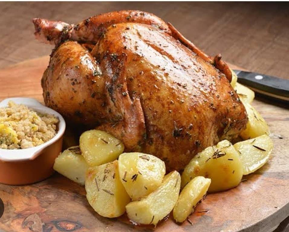 - Frango Assado COM OU SEM Recheio (acompanha batata assada e farofa);