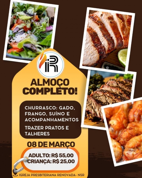 O almoço será realizado na Igreja Presbiteriana Renovada, em Nova Santa Rosa, e a expectativa é de reunir famílias e amigos para um momento de celebração, boa comida e comunhão.