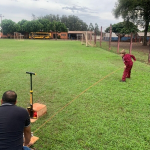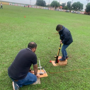 A confecção do foguete, bem como o lançador é de responsabilidade de cada família/aluno, a escola tem a função de acompanhar o lançamento, registrar e lançar os dados na plataforma.