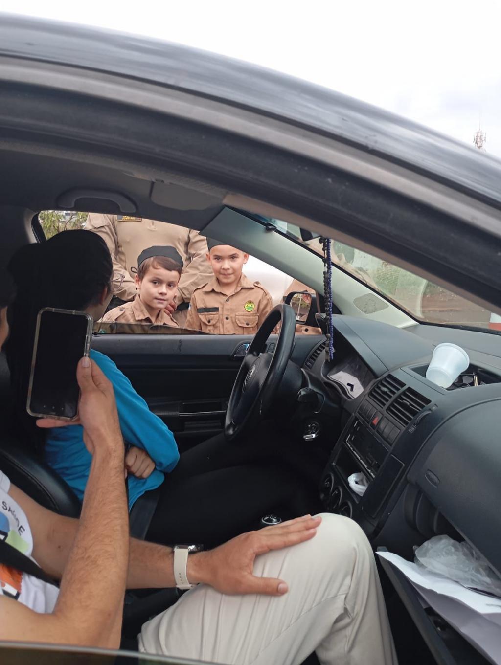 A ação nas ruas foi realizada em um ambiente controlado e seguro, com sinalização e apoio de equipes PM que realizavam a abordagem juntamente com as crianças, garantindo assim a segurança dos pequenos.