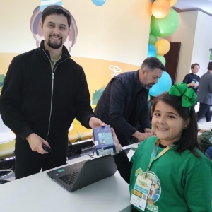 - Gabriela Vitória Sasse, aluna do 2º ano, acompanhada pela professora Karina Luiza Schweig e pela mãe Silvana G. Sasse;