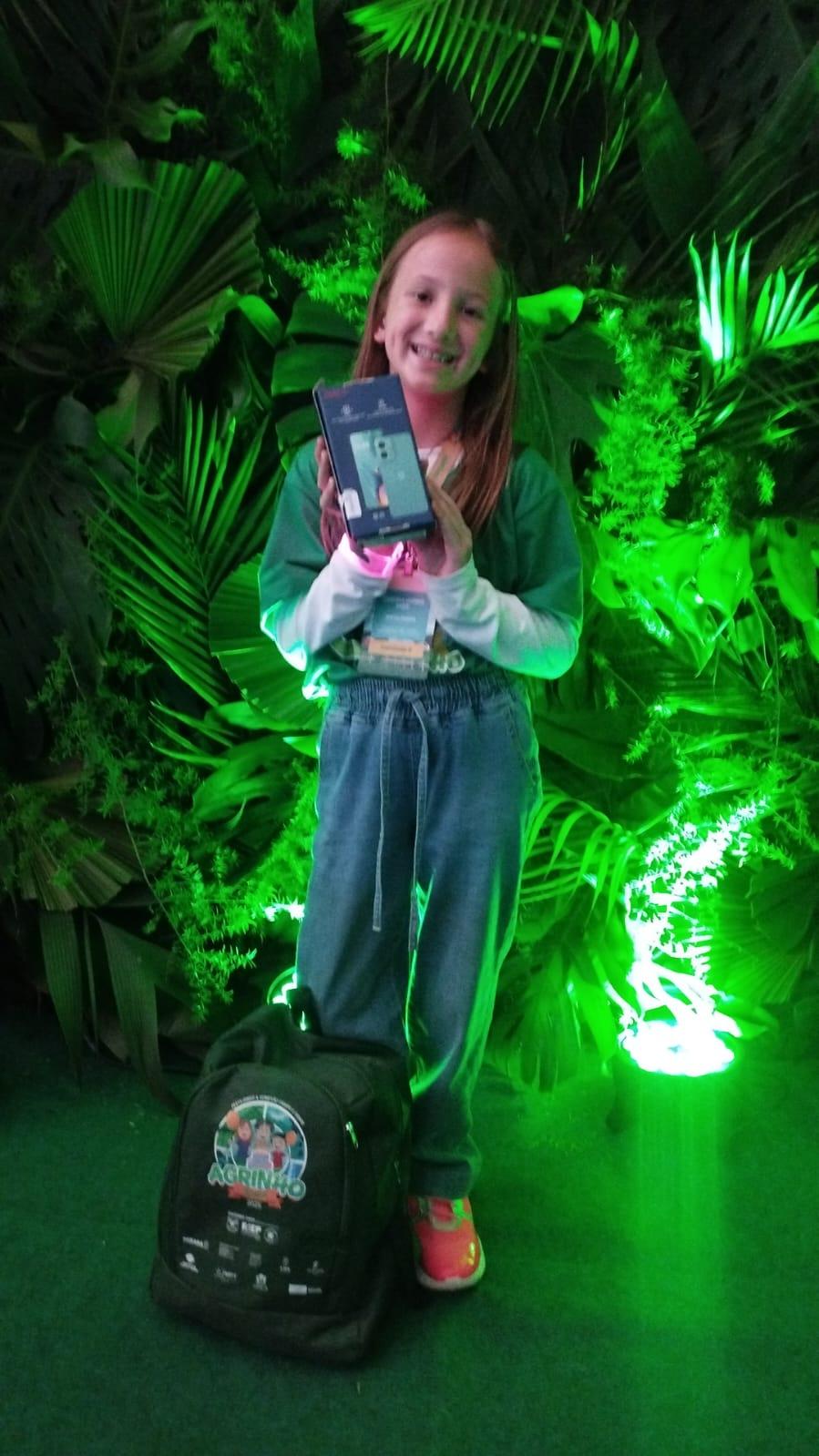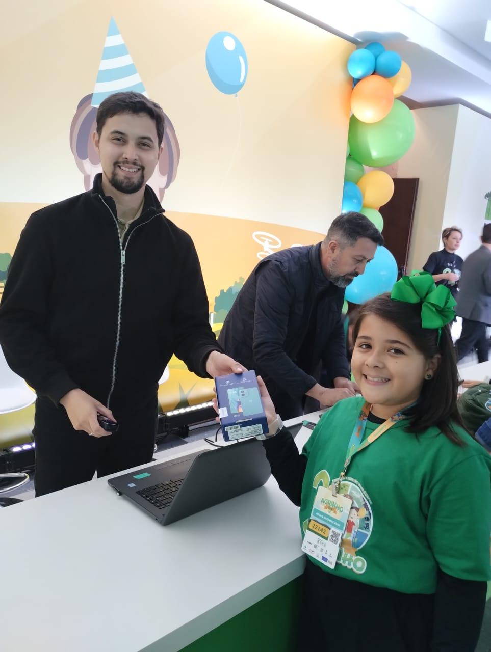 - Abigail Justino de Souza, aluna do 4º ano, acompanhada pela professora Lays de Moura Santos e pela mãe Elizabete J. de Souza.