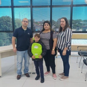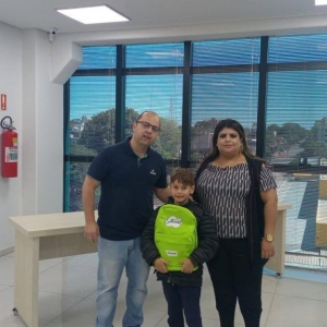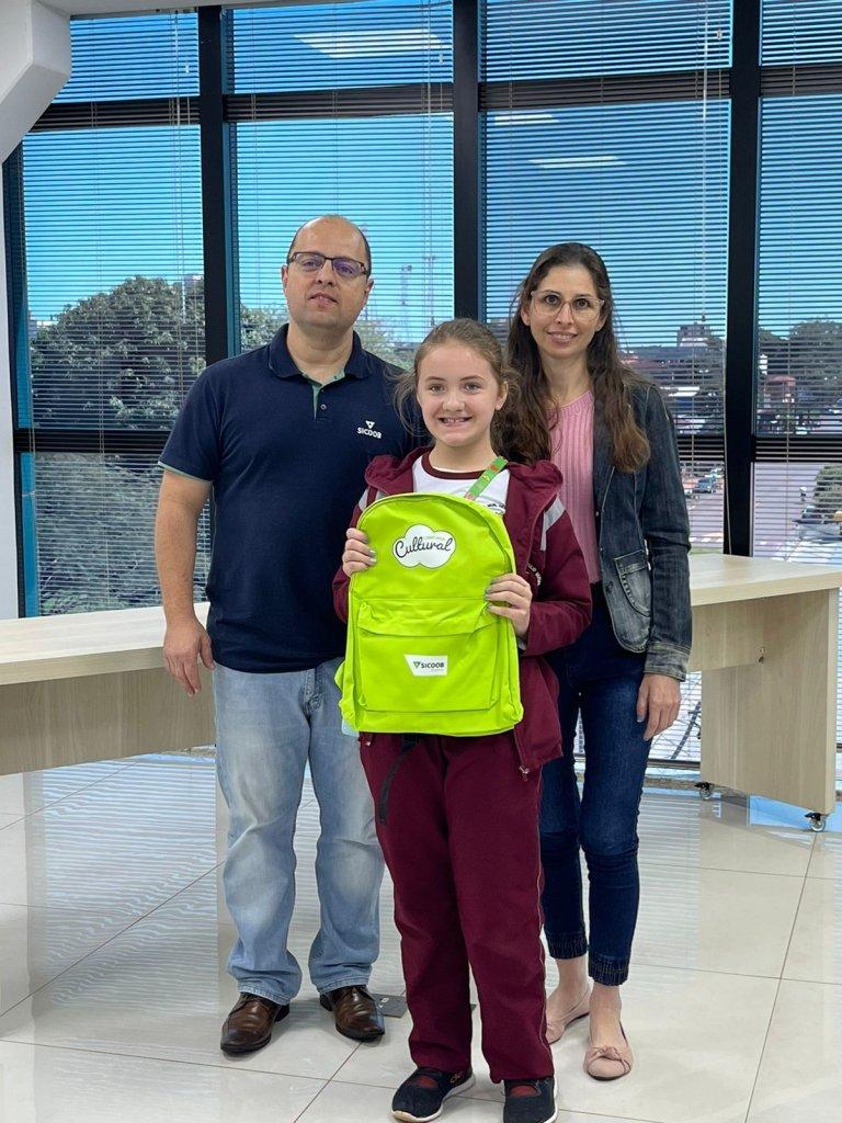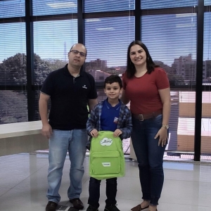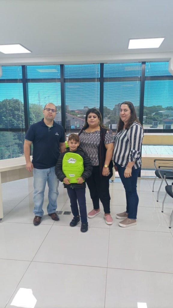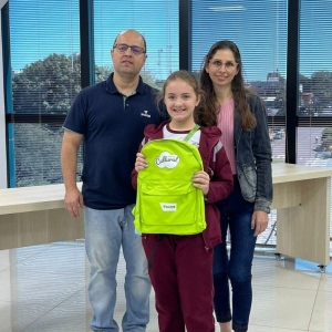 Escola Municipal Willy Barth: Gabriel Henrique Schulz, 3º ano, da professora Fabia Ferreira Philippsen, realizado pela professora da disciplina de Arte, Joceli Pereira dos Santos, acompanhados da diretora, Queila C. Hafemann Zimmermann.