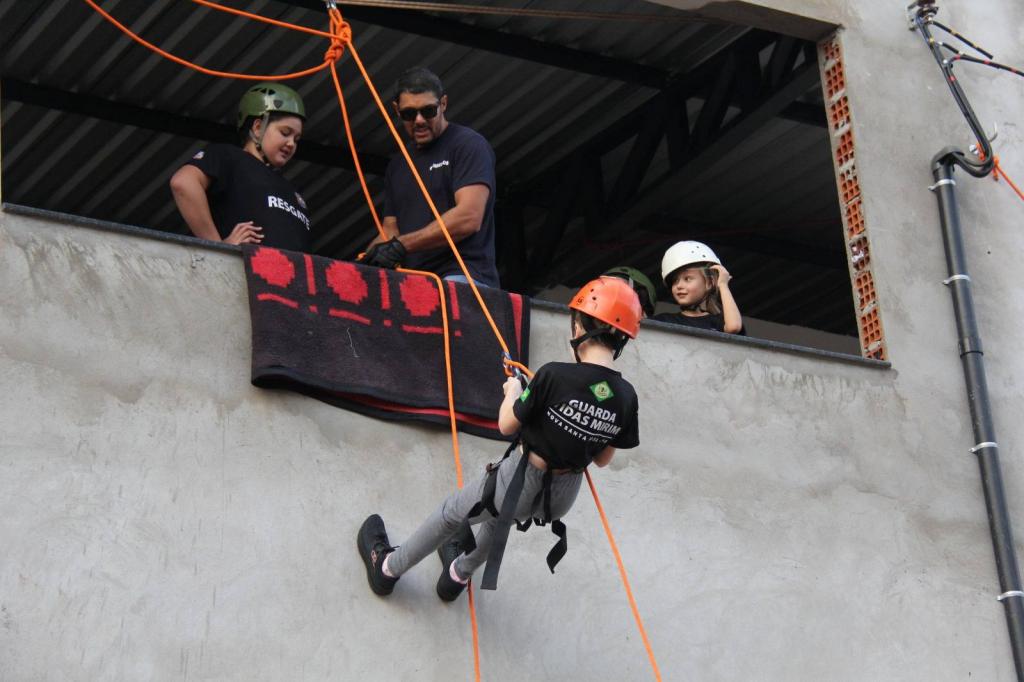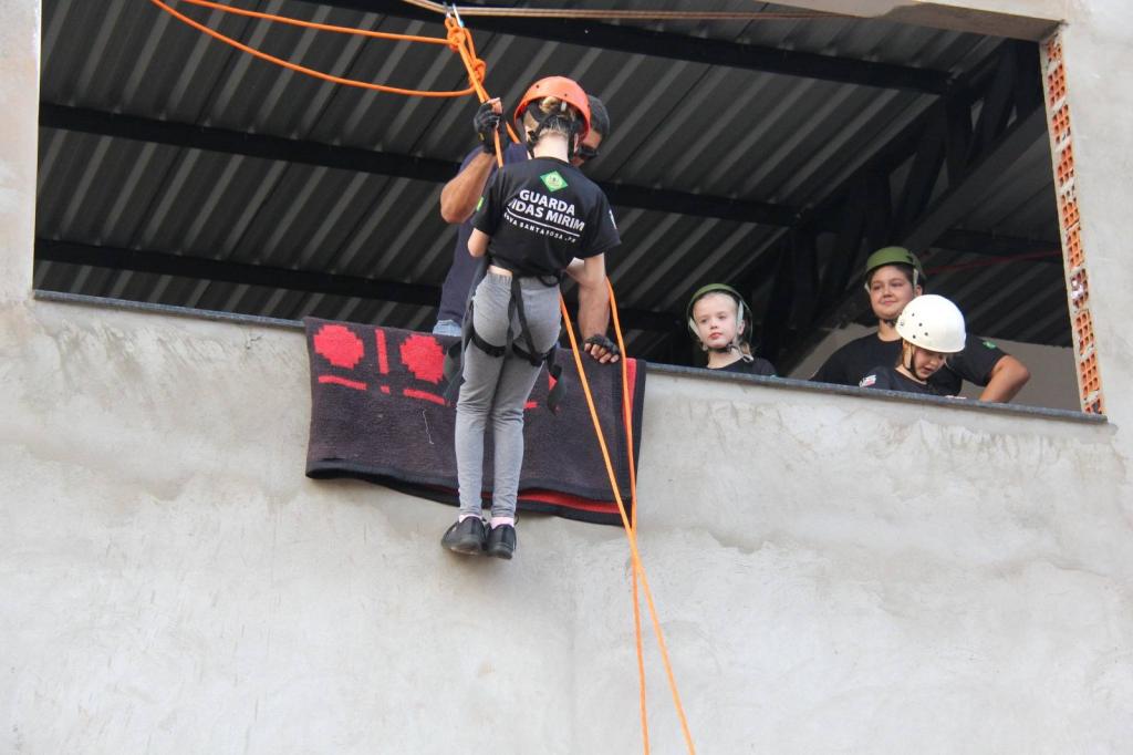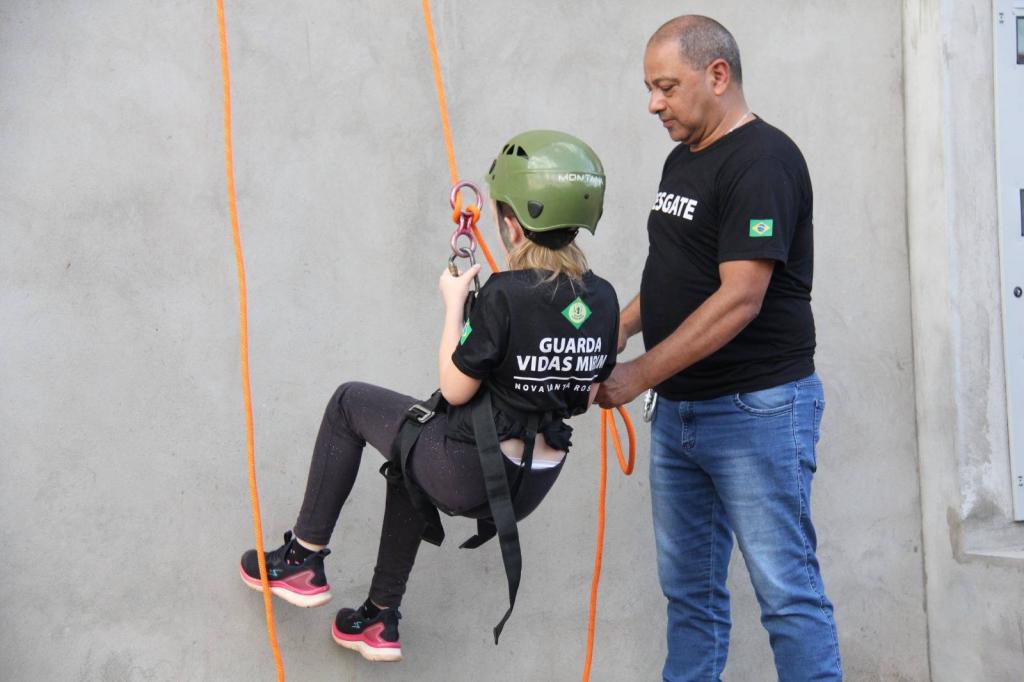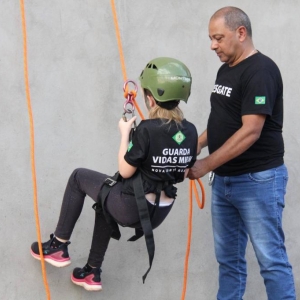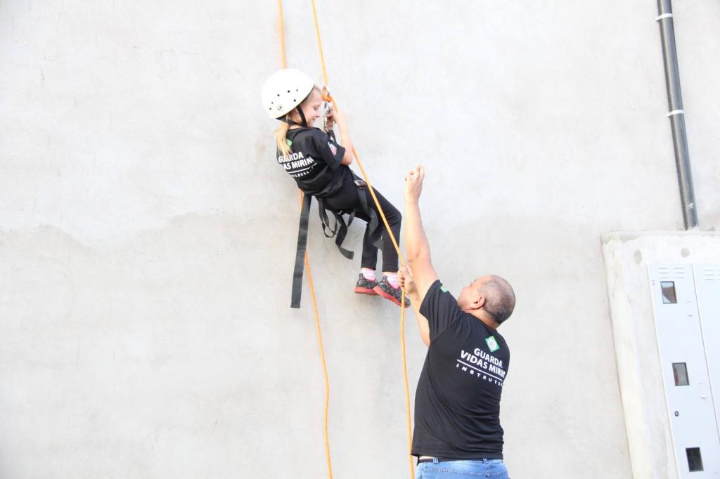 Alunos do projeto Guarda-Vidas Mirim participam de treinamento de rapel