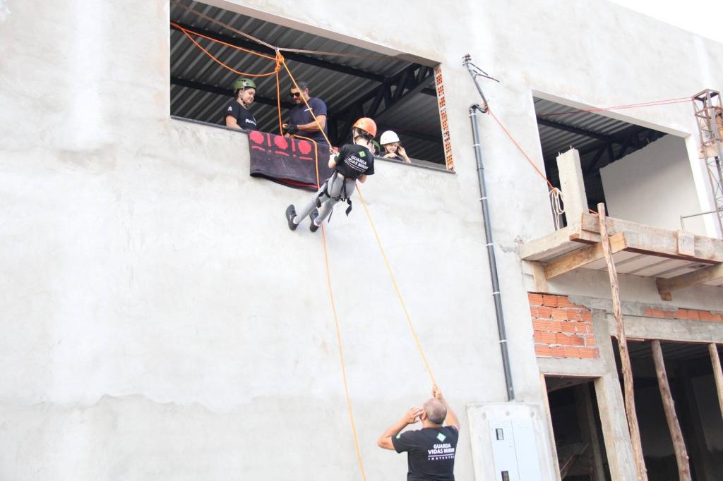 Mais do que uma aventura, o exercício simulou uma situação real de emergência, onde os participantes precisaram utilizar a técnica como meio seguro de evacuação em caso de perigo.