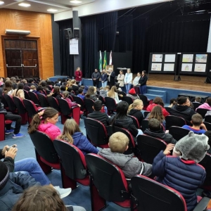 O evento ocorreu no Teatro Municipal e contou com a presença do prefeito Lari Hitz, da secretária de Educação e Cultura, Vera Lucia Lorenzatto, do presidente do Conselho Municipal dos Direitos da Criança e do Adolescente (CMDCA), Paulo Celso da Silva, e das coordenadoras da Secretaria Municipal de Educação, Elenir Mittanck Bourscheid, Gilvani Folmann Rockembach e Mariane Genevra Schiewe, além das diretoras, coordenadoras, professores e estudantes.